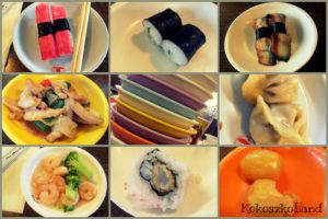 Na pożegnanie Wiednia urozmaiciliśmy sobie menu w orientalnym klimacie. Podczas krótkiej wizyty na Praterze odwiedziliśmy azjatycka restaurację. Z cyklu „zapłać i potem jedz ile chcesz”. Wiadomo, że polskim Januszom w podróży nie trzeba takich rzeczy powtarzać. Kapitalny pomysł. Przy stolikach znajduje się taśmociąg, na którym „jadą” małe porcje japońskich i chińskich przysmaków.